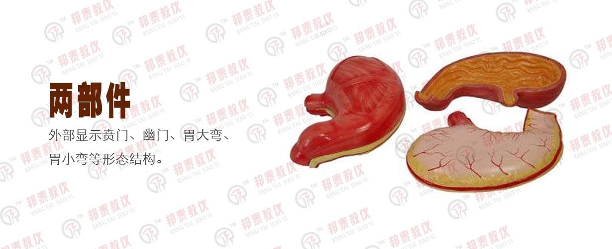 1、產品為近賁門部和幽門部橫斷之放大數倍胃解剖模型。