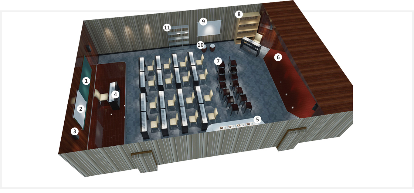 數字化音樂教室是由一些專業的音樂設備,和專業的系統平臺構成一個一體化的音樂教室。利用先進信息技術手段和全新的教學方法,以學習為中心,互動為基礎的全新概念的專業化教室。在數字化音樂教室里,每個學生都有自己的教學終端,所有的學生都可以看到自己顯示屏中播放的內容、與教師互動,可更加清楚明確的完成相關教學任務,相比傳統課堂,這樣的師生互動更具有針對性,更利于教學活動的開展。